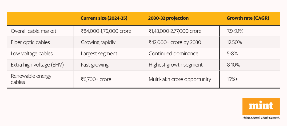 The Adani Group’s entry adds another large dimension of competitive pressure, particularly given the conglomerate’s extensive presence in power generation, transmission, and infrastructure development. These existing relationships could provide natural entry points for cable sales, especially in utility-scale projects.